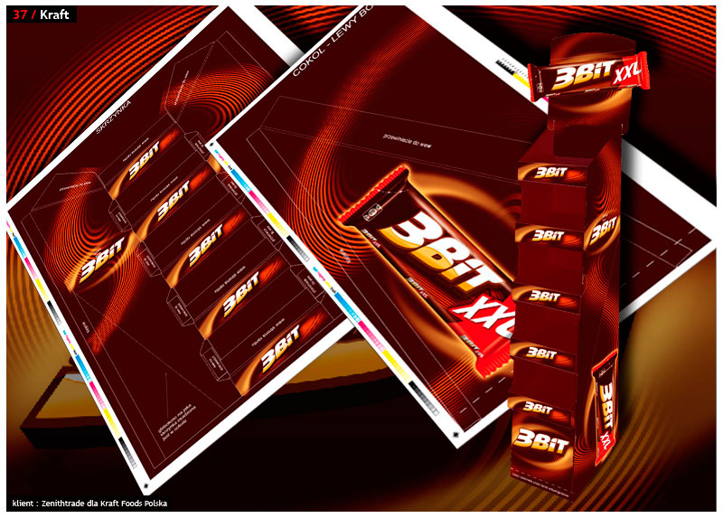 Dla firmy Kraft studio Dadadesign zaprojektowało stand dla batonów 3Bit XXL. Klient: Zenithtrade